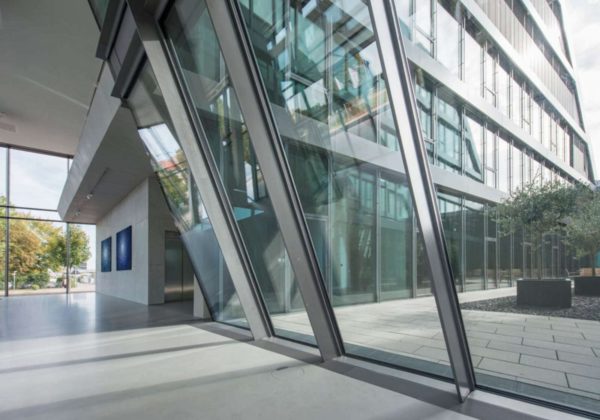 Наклонные противопожарные витражи с заданным пределом огнестойкости изготавливаются из прочных противопожарных профилей, состоящих из камер, которые наполняются сертифицированным огнеупорным материалом. Для остекления применяются огнестойкие стеклопакеты.